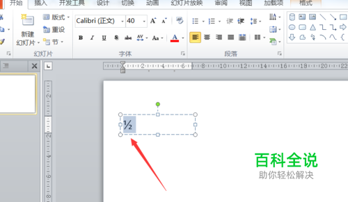在PPT中如何打出二分之一这个数字?