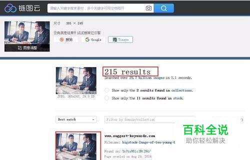 点击【识图一下】,跳转入识图结果页,识图结果默认是展示链图云的数据库搜索结果,如果没有找到自己要的,可以切换搜图引擎 ,链图云网站上集合了搜狗,谷歌,Tineye这三家的搜图接口.这里切到Tineye可以看到搜索结果有215条,很轻松就可以找到想要的大尺寸的无水印图片如图(1600*1067 1.2MB)