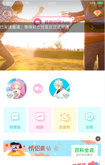 【爱情说】的页面,点击右上角的“邀请情侣”。