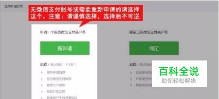 如果您没有微信支付商户号或想重新申请商户号,请选择申请一个新的微信支付商户号。注意:此处请谨慎选择,选择后不可修改!