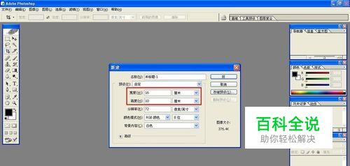 在Photoshop中,请新建一个16X10厘米的空白档案,然后再输入文字
