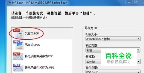 进入HP扫描机后,我们选择扫描的格式为PDF格式,如图;
