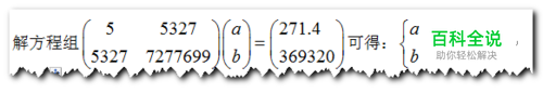 Matlab计算源码(矩阵形式) A=[5,5327;5327,7277699]; B=[271.4;369320]; X=inv(A)*B % inv是矩阵求逆