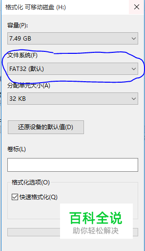 如果非NTFS,那就好办了。再关上属性界面。在提前备份好的情况下,右击U盘,格式化。看到第2栏文件系统FAT32了吗?把它改成NTFS。