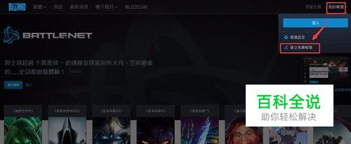 第一步:注册战网亚服账号; 1、登录网址; 2、点击右上角“建立免费账号”;