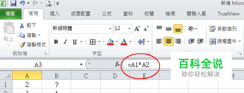 先举个例子,例如A3=A1*A2(6=2x3),故会在A3里面输入=A1*A2;