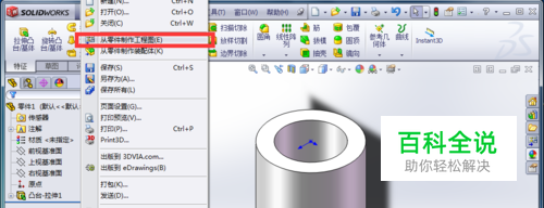 首先,我们在SolidWorks中将需要导出的三维图模型打开。然后选择“文件”-“从零件制作工程图”。