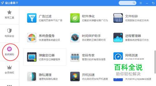 打开金山毒霸,找到百宝箱。