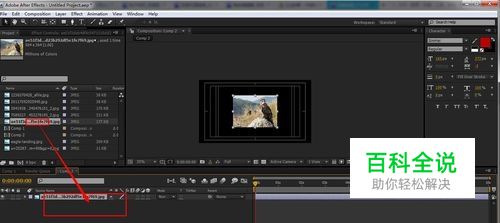 把需要调节的照片导入到合成的时间线上。调节大小以满足我们的需要。