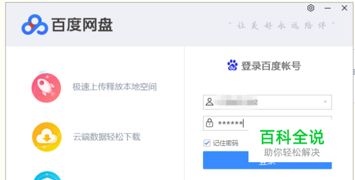 第二步 双击该软件,此时便进入到了登录界面,输入您的百度账号和密码即可。下方的记住密码和自动登录可以根据自己的需求自行设置。