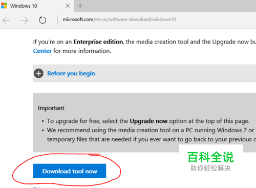 去微软网站http://www.microsoft.com/en-us/software-download/windows10,找到如图所示Download tool now,点击它就可下载MediaCreationTool程序,下载完后安装。