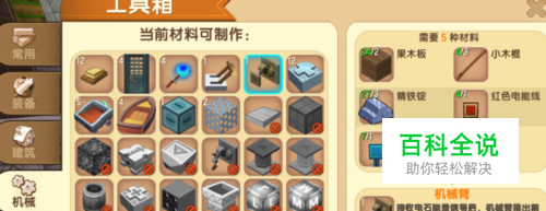 机械臂使用蓝色电能线,红色电能线,精铁锭等物品制作,还需要配套的开关和扳手。