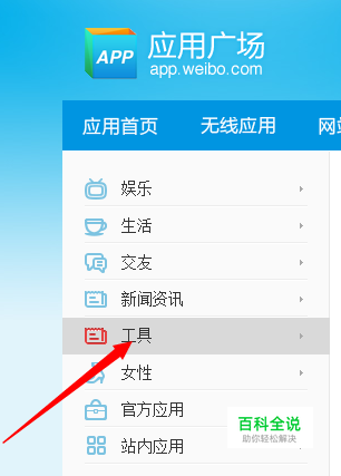 在新浪微博首页找到“应用广场”,点击进入;