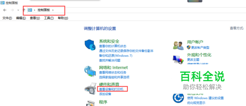 找到硬件和声音,点击查看设备和打印机