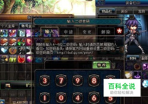 不过可以使用仓库锁来提升一下安全系数,不过仓库锁只能对仓库里的道具进行保护,无法对角色的道具进行保护,这一点有点不好。