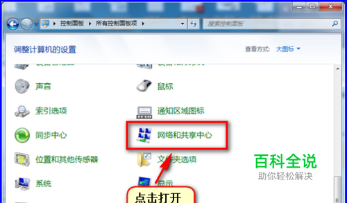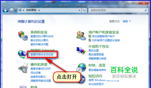 依次打开控制面板—网络和共享中心 ,选择“类别”查看方式