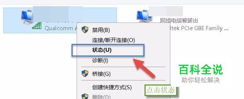 操作三:选择以太网,点击右键选择状态,在弹出来后点击详细信息,操作图片步骤如下。
