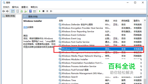 第二步进去系统服务界面之后,我们首先找到“Windows Installer”服务,双击进去,如下图所示: