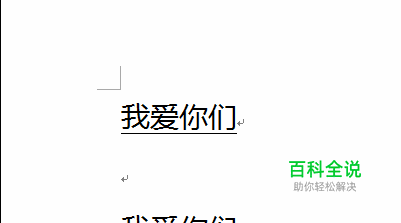 “我爱你们”下方即显出两条横线; 也可以这样操作;选中“我爱你们”,然后,光标放在“我爱你们”上;鼠标右击;