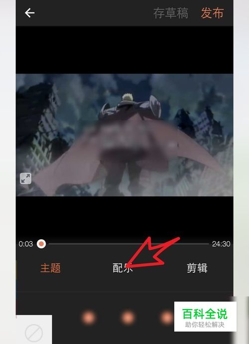 看到有一个喇叭的图标,把音量条上面的滑块往左侧移动到尽头,这个时候视频的声音将会被消除。然后点击右上角的发布按钮。