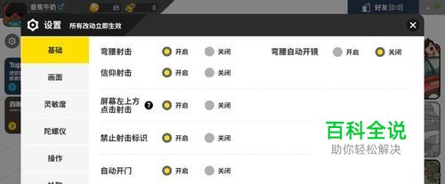 首先是基础设置:基础设置里面只有几项需要我们进行修改,一是将自动开门给关闭,二是将屏幕左上方点击射击给关闭,其他可有玩家自己进行喜欢的操作设置。