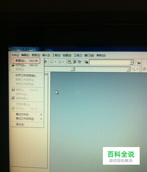 打开安装好的vc6.0 点击任务栏的文件选项