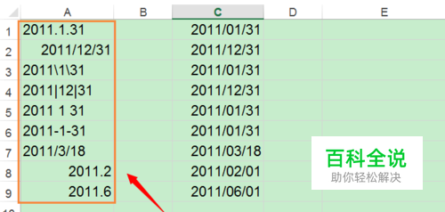 如下图是一张表格,其中A列是格式不同的日期列表,看上去是不是很乱呢?如果统一设置成C列那样子就完美了...