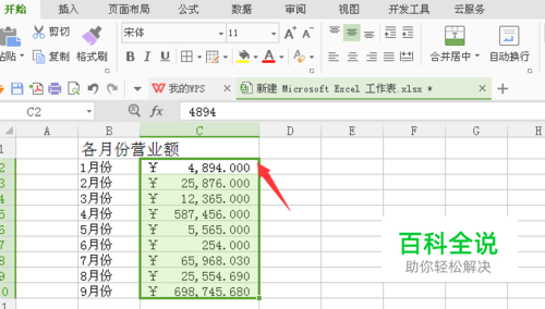 如果想设置小数点位数,则先选中要设置的单元格,想增加小数位数时,点击如图所示的选项。