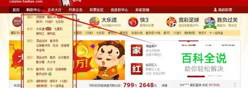 我们先登录淘宝账号,没有号的去注册一个,很简单,登录后在首页右边可以看到彩票的字样,我们点击它,如图所示