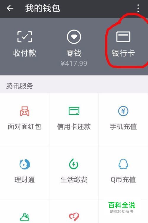 登陆微信,点右下角的我,点钱包,点银行卡