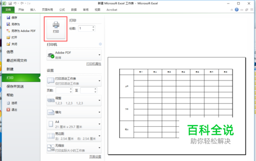 重新点击顶部菜单【文件】-【打印】,在右侧可以看到打印的预览效果,表格的位置没有在A4纸的中间位置。