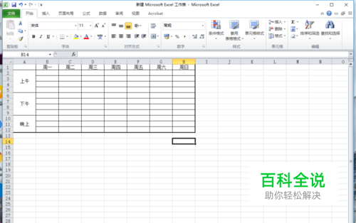 首先我们先绘制一个表格,我们以课程表为例。(不会制作表格的同学可以点击下方引用的经验来先制作一个课程表表格)