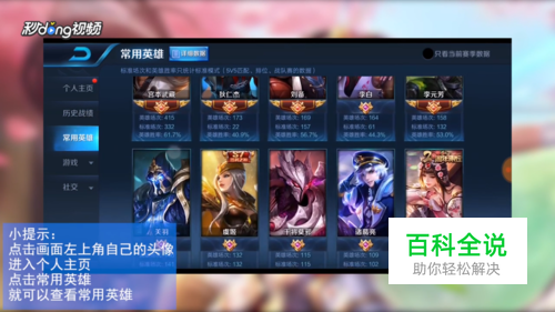 王者荣耀如何查看常用英雄 2025-05-30 00:06:44 王者荣耀是当下最火的手游之一,今天小编就为大家介绍一下王者荣耀如何查看常用英雄。 操作方法 01 首先点击画面左上角自己的头像。 02 然后进入个人主页界面。 03 最后点击“常用英雄”即可查看。 04 总结如下。 赞 (0) 相关推荐 王者荣耀怎么查看所有英雄使用次数 有时候我们在玩王者荣耀的时候,想查看所有英雄的使用次数,怎么操作呢,下面来分享一下方法 操作方法 01 第一步登录账号进去主界面,点击个人头像,如下图所示: 02 第二步资料界面之后,选择常用英雄,如 ... 王者荣耀如何查看各英雄的大神排行? 我们知道王者荣耀是一款非常火爆的手游,这款游戏中有很多英雄,对于这些英雄每个玩家都有自己的熟练程度,那如何查看各英雄的大神排行呢? 操作方法 01 首先我们点开王者荣耀手游,进入游戏页面的首页后,我们 ... 王者荣耀怎么查看自己英雄的皮肤个数 王者荣耀是现在很火热的手游,玩家在游戏里除了炫耀段位之外就是皮肤了,下面让小编告诉大家怎么查看自己的皮肤. 操作方法 01 王者荣耀里的皮肤个数在游戏里是不会显示的,需要下载安装一个王者荣耀助手才能查 ... 王者荣耀如何查看地区英雄排名 我们经常看到XXX是XXX省第一李白,是XXX市第一甄姬,这些排名是根据荣耀的荣耀战力排名的.如果想要查看某个地区的英雄排名,此时该怎么操作呢?下面就跟大家分享一下王者荣耀查看地区英雄排名的方法,希望 ... 王者荣耀如何使用常用英雄自定义攻略功能? 常用英雄自定义攻略功能目前还属于灰度开启状态,目前只有IOS的微信全部区服开启了此功能. 如果不是IOS系统的微信玩家,暂时都不能使用此功能.对于已开启此功能的玩家,步骤如下. 进入游戏主界面,点击左 ... 王者荣耀怎么关闭常用职业英雄显示 王者荣耀怎么关闭常用职业英雄显示呢?今天小编为大家讲解一下. 操作方法 01 打开手机,找到王者荣耀,点击并进入,如图所示. 02 进入之后,点击图示位置的设置. 03 进入设置页面之后,找到常用职业 ... 王者荣耀如何查看最近的战绩情况 玩游戏主要还是娱乐,快乐开心就好,不要在乎输赢.虽然是这么说但是如果老是输也没有意思哈,王者荣耀如何查看最近的战绩情况今天给大家介绍一下. 操作方法 01 游戏有玩家的游戏等级,铭文和战绩这几方面的数 ... 怎么在王者荣耀社区查看已领取和未领取铭文? 怎么在王者荣耀社区查看已领取和未领取铭文?今天小编为大家讲解一下. 操作方法 01 打开手机,找到王者荣耀,点击并进入,如图所示. 02 进入之后,点击"社区",进入下一页面,如图 ... 王者荣耀如何查看战斗力及其排名? 王者荣耀如何查看战斗力及其排名?今天小编为大家讲解一下. 操作方法 01 打开手机,找到王者荣耀,点击并进入,如图所示. 02 进入之后,点击"排位赛,进入下一页面,如图所示. 03 进入之 ...