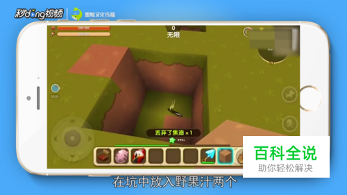 在坑中放入“野果汁”两个,“焦油”、“财神蛋”、“生物蛋-猪”各一个