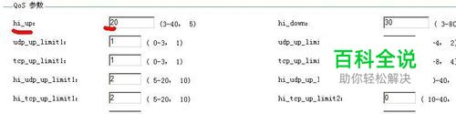 在路由器地址后加qos_ext.htm进入qos参数设置页面(如果出现不了设置界面请更新固件)。在该设置页面第一个参数选项hi_up,将默认数值8改为20。如图: