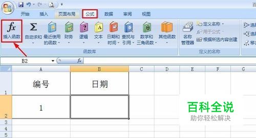 第二步:选中要放日期的单元格,在菜单栏“公式”中选择“插入函数”。