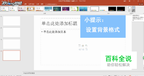 打开ppt文件,点击菜单栏中的“设计”按钮,选择“设置背景格式”。