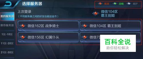 首先展示的是我的服务器,里面的个数是自己目前所拥有的游戏区,除此之外,该页面的右上角有三个图标,分别表示游戏区是爆满状态、流畅状态、还是维护状态,这样就可以确认选择的游戏区是否可以新建自己的小号了