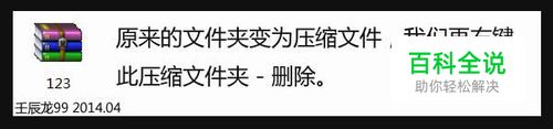这时原来的文件夹变成了压缩文件夹,我们再右键此文件夹 - 删除。因故不能删除的文件也就删除了。