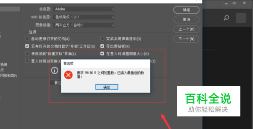 ps2018首选项出现要求96和8之间的整数怎么办?