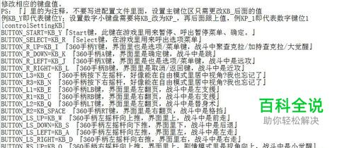 修改相应的键盘值。 PS:『』里的为注释,不要写进配置文件里面,设置主键位区只需更改KB_后面的值,例KB_Y即代表键位Y;设置数字小键盘需要将KB_改为KP_,再后面跟上值,例KP_1即代表数字键位1