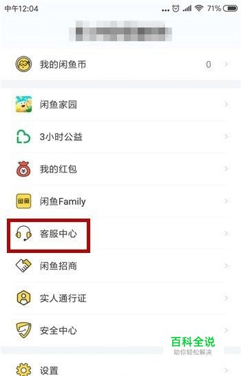 在闲鱼的主页中下拉界面,找到【客服中心】选项并点击。