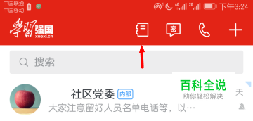 学习强国通讯录在哪? 登录学习强国之后,在顶部找到第一个按钮,像小册子一样的【通讯录】。