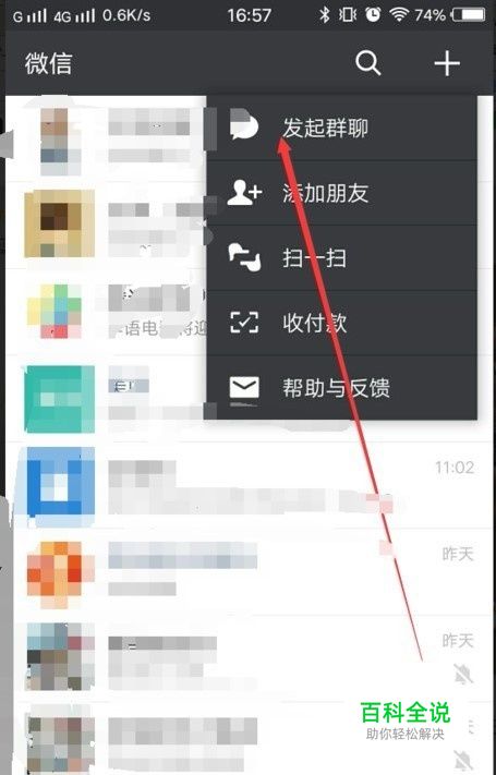 选择“发起群聊”,建立一个群聊,实现转换好友的基础。