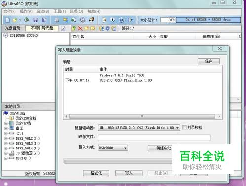 1、安装UltraISO软碟通 程序 并完成。 2、插入 U盘,启动UltraISO软碟通 程序,点击试用软件, 点击工具栏菜单上的启动(B)--再点击”写入硬盘镜像“,如图1