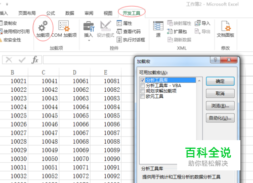 抽样工具是在 数据分析窗口的,需要先开启 开发工具功能选项,再加载 分析工具库。 路径是:单击EXCEL工作左上角的 文件-选项-自定义功能区,如图,将 开发工具勾选上,点击按钮。 接着选择功能选项 开发工具-加载项,在弹出的 加载宏对话窗口里,将 分析工具库勾选上,点击按钮。 然后在功能选项 数据下就能看到 数据分析的功能了。