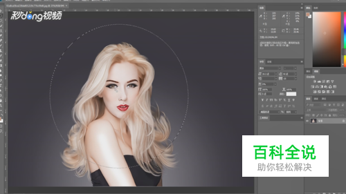 左手按住“shift”和“alt”两个键,右手拖动鼠标画出一个比较合适的圆形选区。