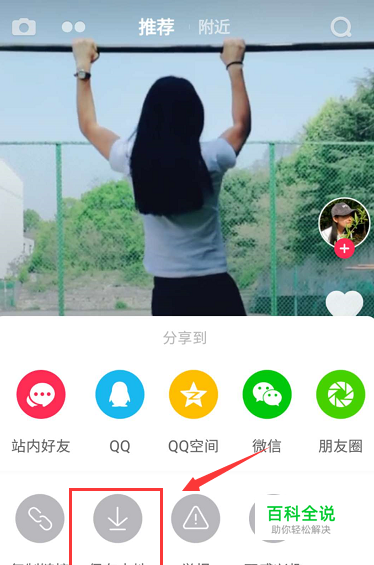 在分享界面点击保存本地,就可以将视频下载到手机了,如下图所示