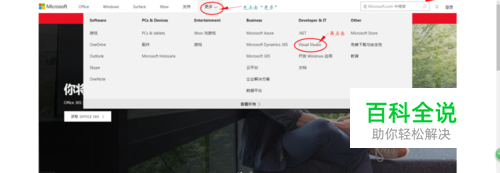 首先打开微软官网https://www.microsoft.com/zh-cn/,然后点击上方的“更多”,再点击Visual Studio