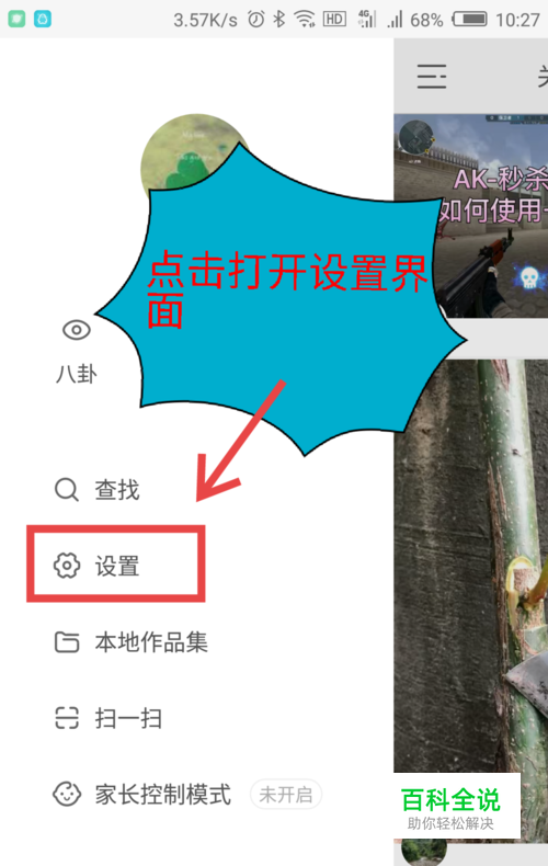 在打开的左侧界面中,个人信息下面有个设置选项,点击打开设置界面。
